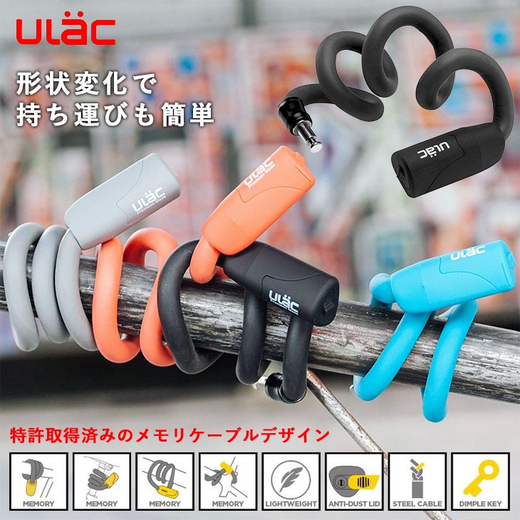 自転車 鍵 ワイヤーロック 形状記憶 鍵穴カバー 盗難防止 頑丈 おしゃれ ULAC ロックブロス