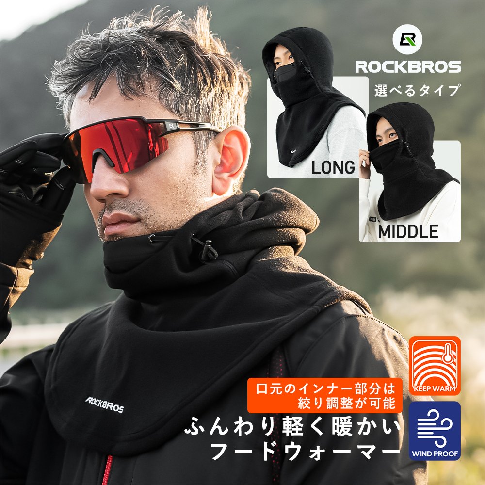 フードウォーマー フード付き ネックウォーマー スキー スノボ バイク 自転車 フリース 防寒 保温 ロックブロス