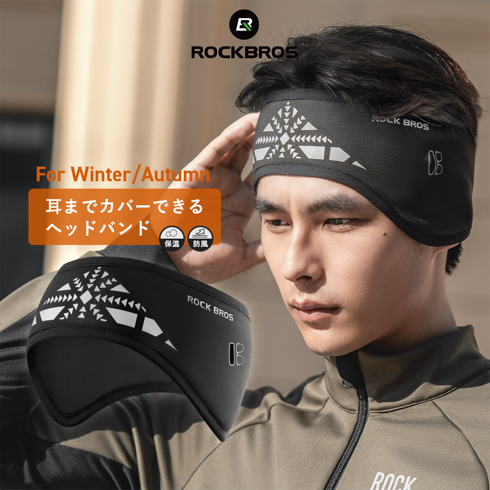 イヤーウォーマー ヘッドバンド 耳当て イヤーキャップ ヘッドウォーマー メガネホール付 裏起毛 防風 防寒 自転車 ランニング ロックブロス