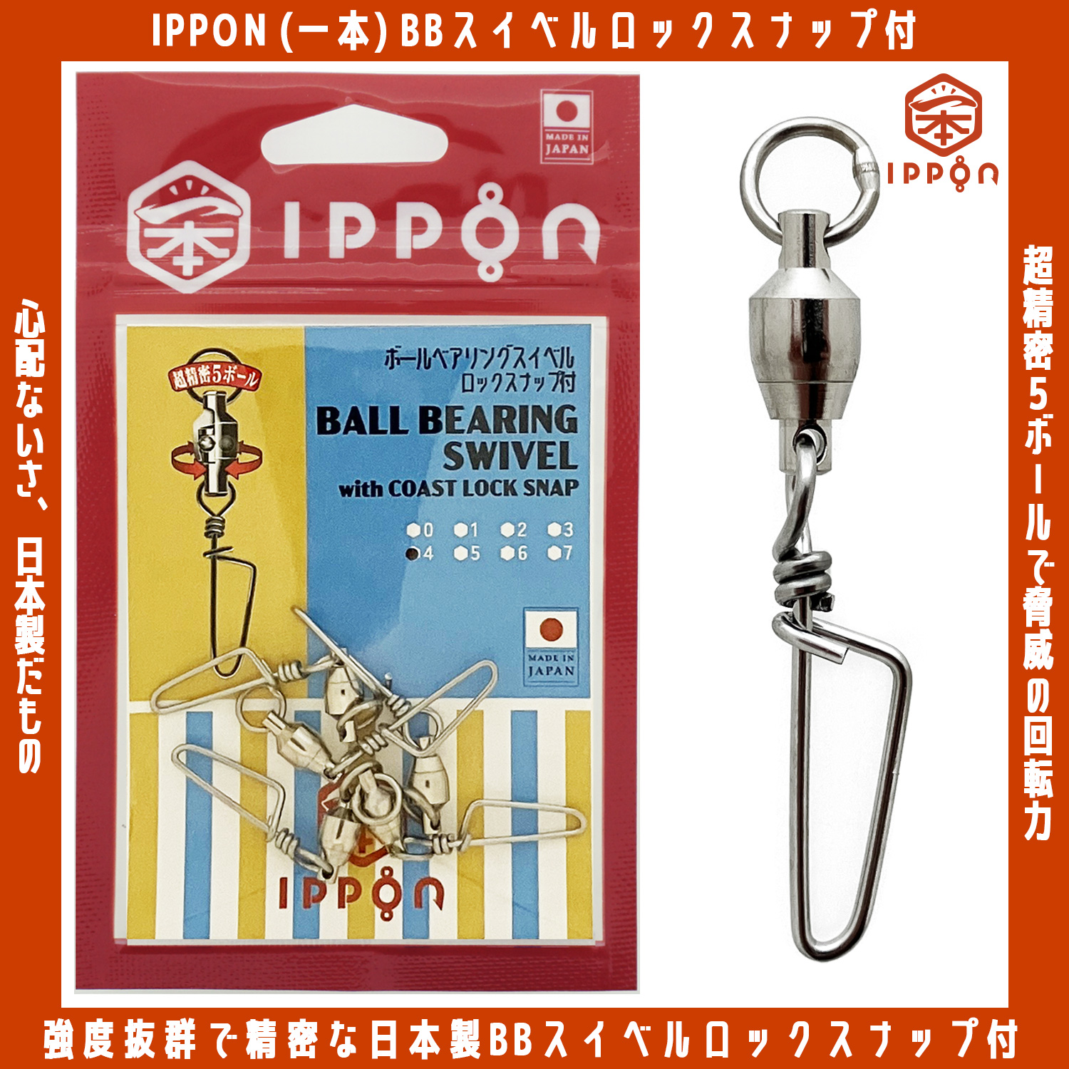 /メール便可/ IPPON (一本) ボールベアリングスイベル ロックスナップ付 #0/5個入〜#7/2個入 日本製 ステンレス 徳用 釣り 仕掛け