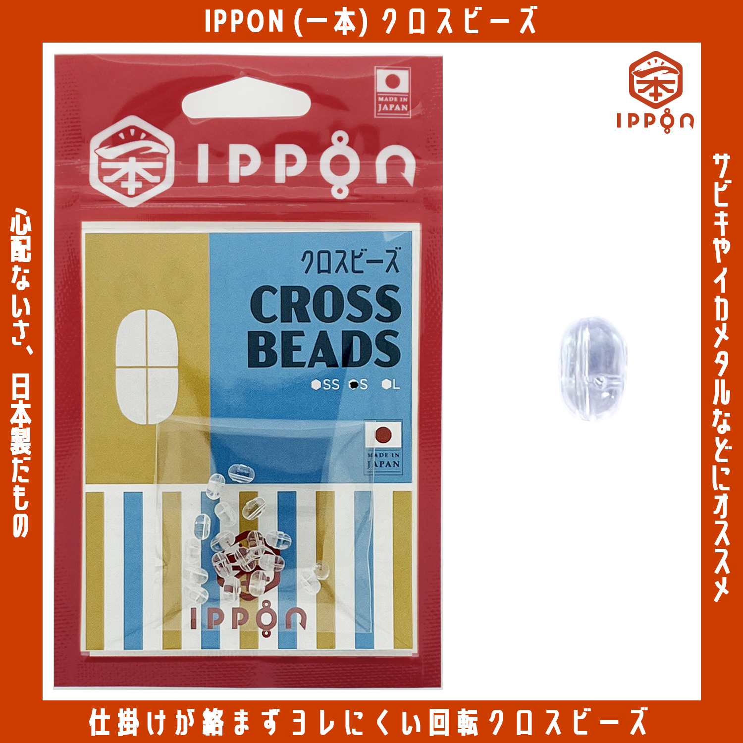 /メール便可/ IPPON (一本) クロスビーズ 日本製 回転 しもり玉 釣り 仕掛け