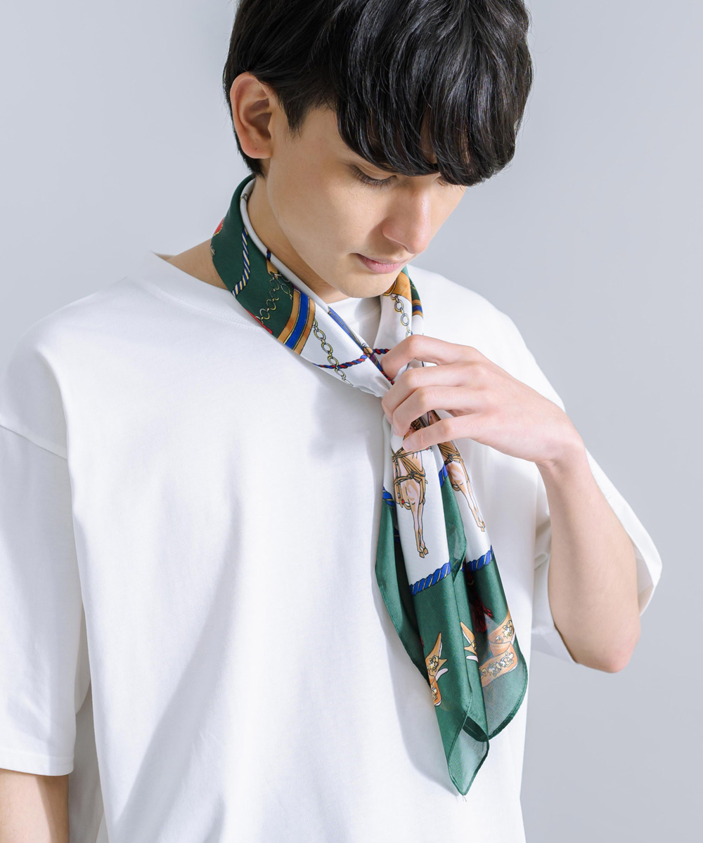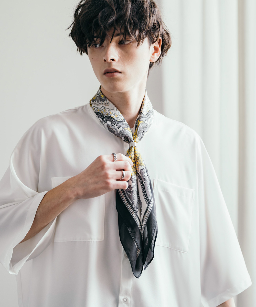 魅せ方は自由で、1枚で何通りも楽しめるのがスカーフのいいところ。
