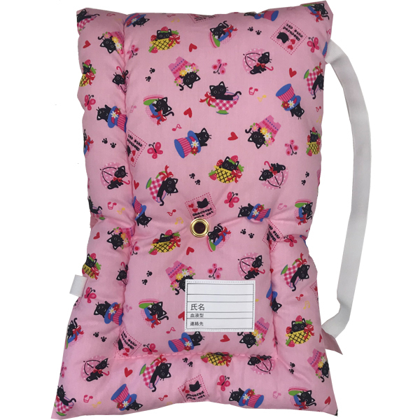 日本製防災クッション [ネコピンク] 約30cm×45cm Sサイズ 幼児から小学生低学年向け 防災頭巾 防災ずきん 子供用 こども用