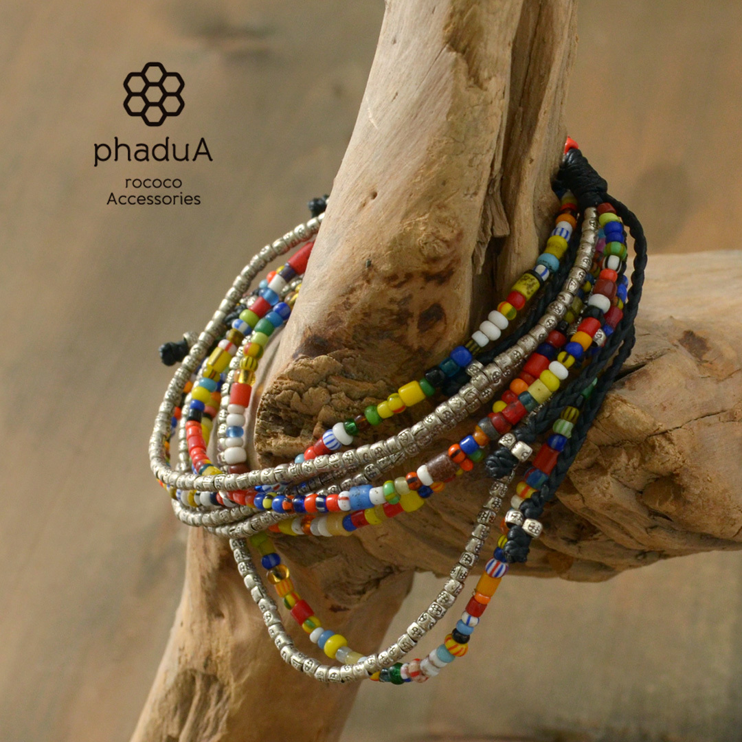 | 素材 | アフリカンビーズ(ガラス)、カレンシルバー、ワックスコード |