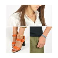 フィット感の調整も2つのリングは、ツイストされたワックスコード緩めれば、数ミリ単位でサイズ調節が可能。自分に合わせた“ジャスト”を決めれば、あとは着け外しがとても簡単。1つはブレス用位置に、1つはアンクレット用の位置にと調節によって、自分好み“フィット”を作れます。またシンプルなので、何本か重ねたり、シルバーアクセサリーなどと組み合わせても相性が良く、重ね着けもおススメです。