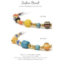 独特のカラーリング、不揃いな個性がとても印象的なヴィンテージのインディアンビーズを採用。グラスビーズのカラーや大きななどは安定していませんが、レッドマルチ、ブルーマルチに分けることで一定の統一感を持たせながら、"個性"を生かしました。