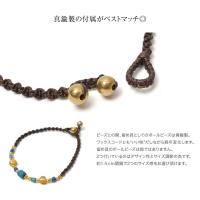 ビーズとの間、留め具としてのボールビーズは真鍮製。ワックスコードとも"いい味"だしながら経年変化します。留め具のボールビーズは鈴ではありません。2つ付いているのはデザイン性とサイズ調節の為です。約1.5cm間隔で2つのサイズ感をお選び頂けます。