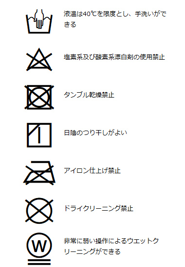 | 洗濯表記 | 詳しくはこちら⇒ |