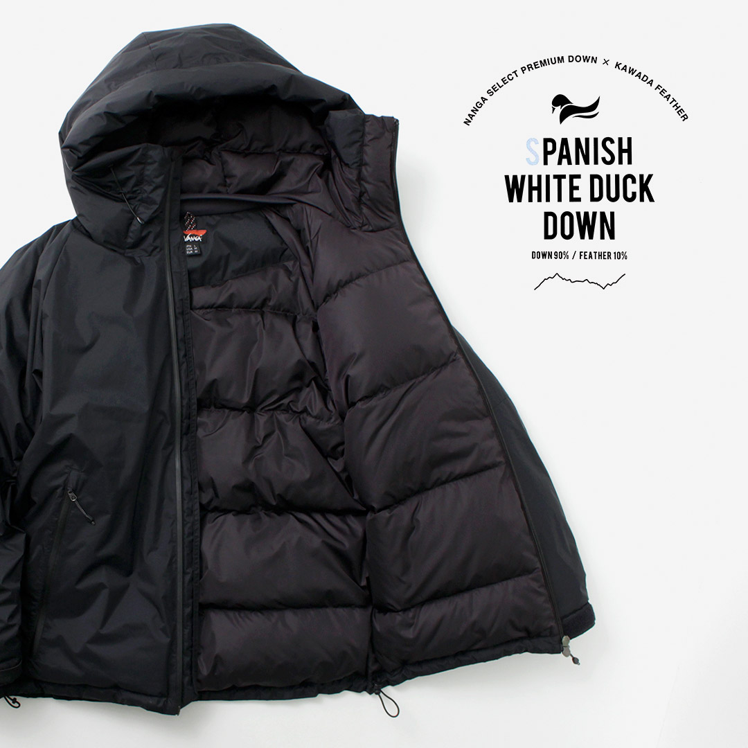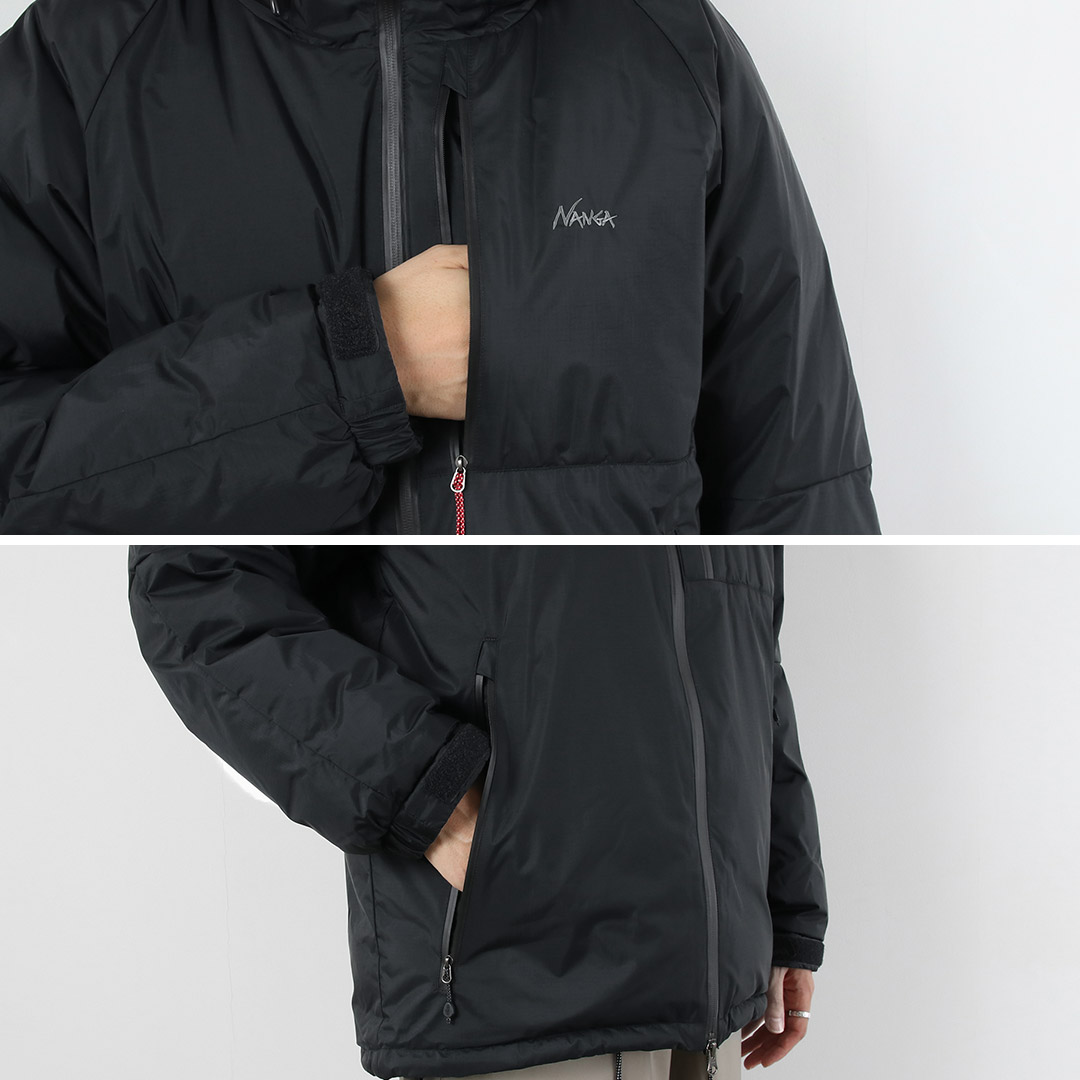 ノンパック製法を採用する理由NANGAのダウン製品は、デザイン性、軽量性を高めるため、表地と裏地の間に直接ダウン/フェザーを入れる「ノンパック製法」が採用されています。ダウン/フェザーが生地の上に付着している場合や、縫目から出ている場合がございますが、製造過程の特性として起きるものですので、製品上問題ございません。