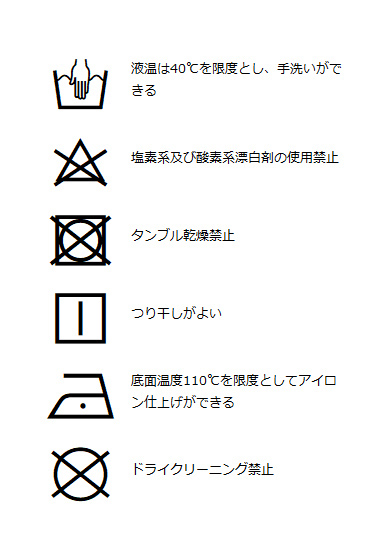 | 洗濯表記 | 詳しくはこちら⇒ |