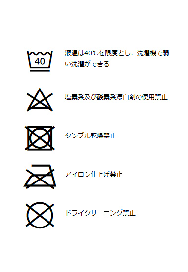 | 洗濯表記 | 詳しくはこちら⇒ |