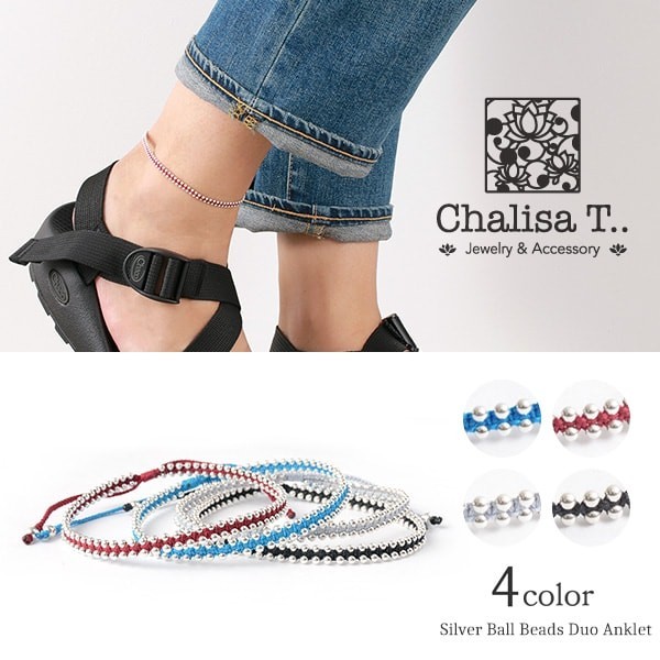 存在感がありながらも上品な印象1.5mm程のシルバーボールビーズを並列で配置し、カジュアルかつ上品な印象に仕上げたアンクレット。4色展開となっており、シックなトーンから、ポップなものまでご用意。スタイリングによって使い分けるのも良いですね◎。