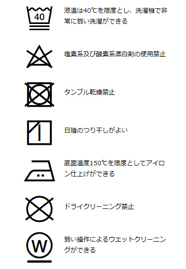 | 洗濯表記 | 詳しくはこちら⇒ |