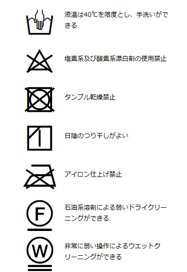 | 洗濯表記 | 詳しくはこちら⇒ |