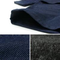 ストレッチと防寒性を兼備表地がデニム、裏地にアクリルネルを採用したオリジナルの二重織デニムを採用。裏地は緯糸にアクリルとウールの混紡糸を打ち込んでおり、起毛を施しました。軽やかな着用感で暖かさは抜群です。
