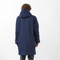 ダッフルコートらしいややボリュームのあるシルエットで、前立ての見返しからフードまでの赤いパイピングがアクセントに。本水牛角を使用したトグルや肩の補強など、本格志向でありながらデニムの経年変化も楽しめる王道ダッフルに仕上がっています。