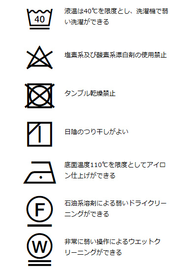 | 洗濯表記 | 詳しくはこちら⇒ |