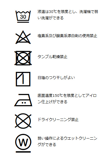 | 洗濯表記 | 詳しくはこちら⇒ |