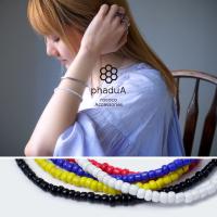 アクセントカラーを手元に鮮やかな色味が魅力のグラスビーズブレスレット。水に強いワックスコードを使用し、海やプールなどのアクティブシーンでも付けたままでOK。使い始めから馴染みやすく快適な着用感を与えてくれます。