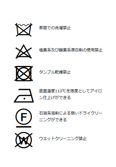 | 洗濯表記 | 詳しくはこちら⇒ |