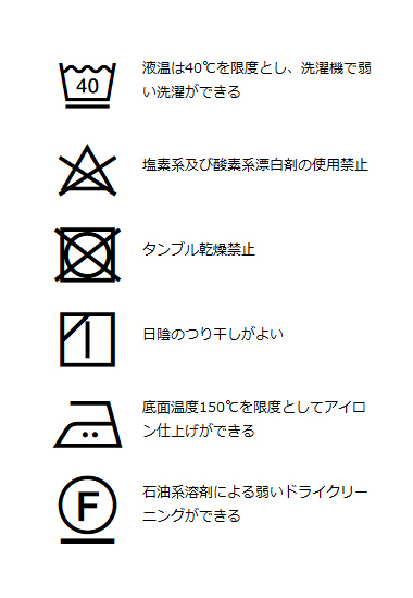 | 洗濯表記 | 詳しくはこちら⇒ |