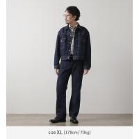 | ●スタッフ(177cm/67kg) 体型:普通 着用:サイズXL 標準的な厚さのシャツの上から着用しましたが、肩は少し落ちて、身幅は余裕があります。全体的に丁度良いサイズ感で窮屈さはありません。着丈はヒップより少し上位置で、袖丈は手の甲の3/4くらいの長さです。シャツを裾から覗かせるレイヤードスタイルがハマりやすい丈感です。 |