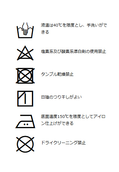 | 洗濯表記 | 詳しくはこちら⇒ |