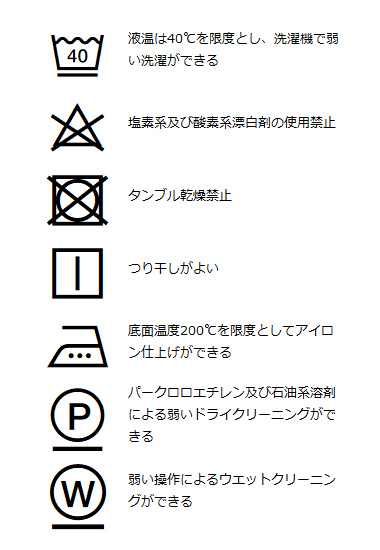 | 洗濯表記 | 詳しくはこちら⇒ |