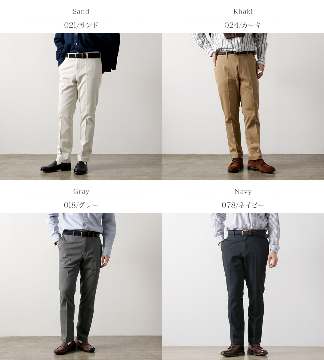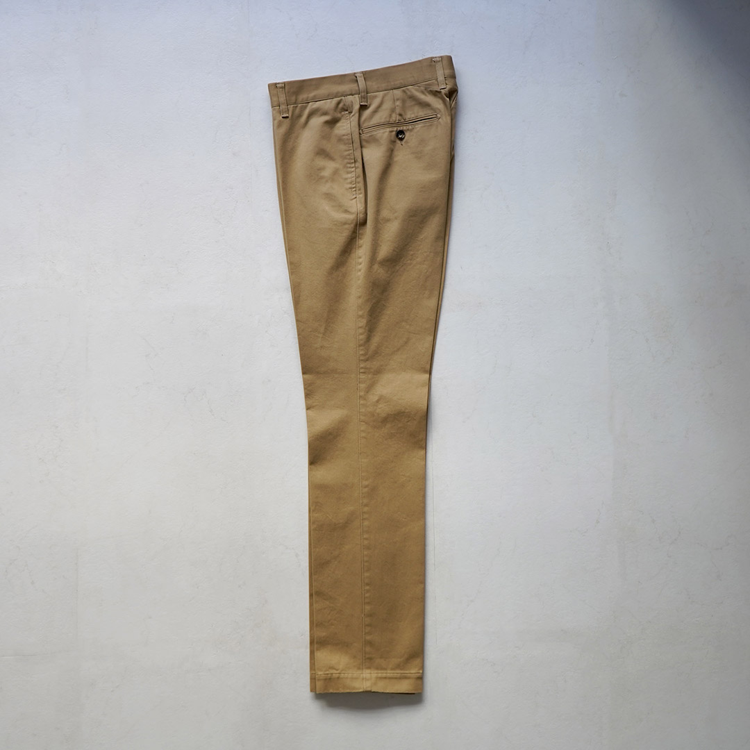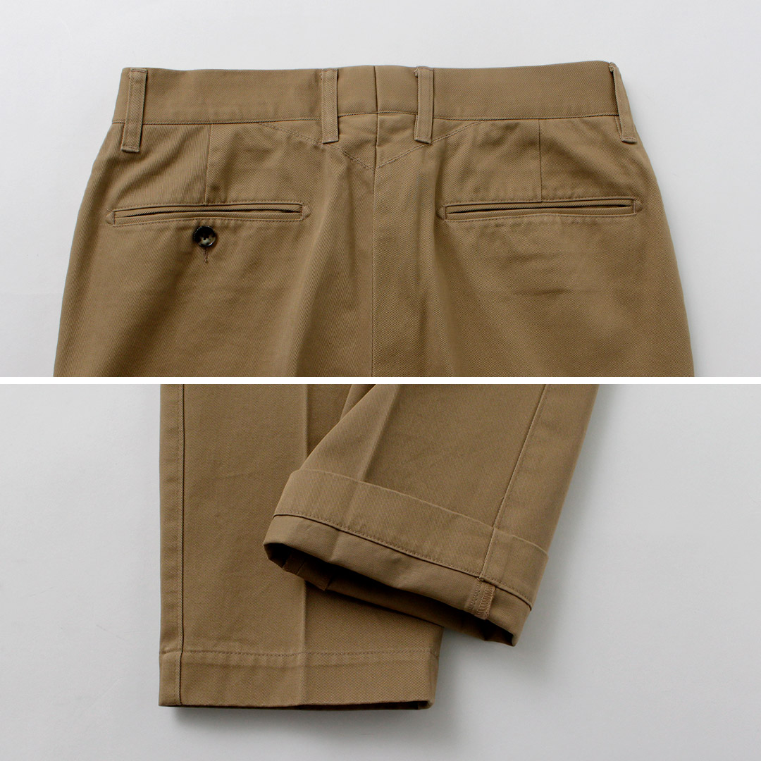 | ●スタッフ(181cm/80kg) 体型:ガッチリ 着用:サイズXL サイズLでも着用できますが、サイズXLのほうがもも周りとヒップにゆとりがあり快適でした。ハリ感のある生地が一般的なチノパンにはない上品さをプラスしています。普段のコーディネートに加えるだけでこなれたスタイリングへと昇華してくれます。 |