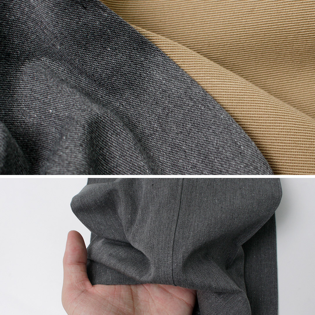 | ●スタッフ(165cm/52kg) 体型:痩せ型 着用:サイズS ウエストは少しゆとりがあるので、ベルトは必須です。全体的なシルエットもゆとりがあるので体型も選ばず穿きやすいと思います。ミリタリーテイストながら品よく穿けるおすすめのトラウザーです。 |