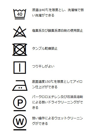 | 洗濯表記 | 詳しくはこちら⇒ | ||||
