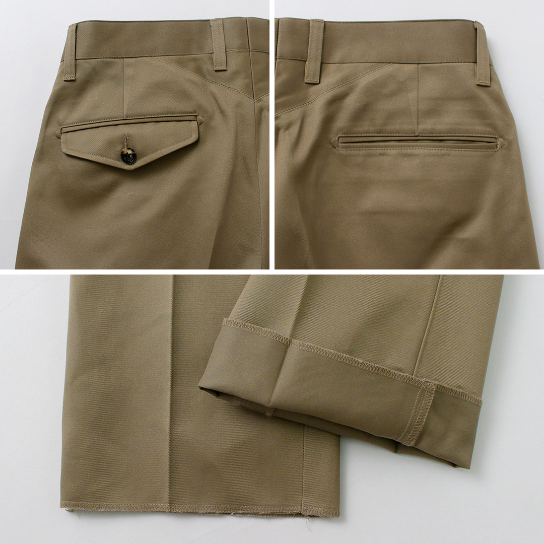 | ご注意 | ※裾口は、アンフィニッシュ(未仕上げ)状態です。そのため、股下の長さが一般的なパンツと比べて長い状態です。実際にご着用いただいてから、丈上げされることをオススメ致します。 ※裾上げを前提とした商品につき、サイズごとに総丈に多少の差が生じる場合がございます。あらかじめご了承ください。 | ||||