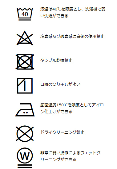 | 洗濯表記 | 詳しくはこちら⇒ |