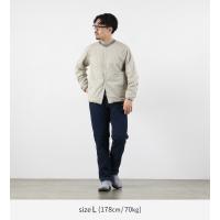 | ●スタッフ(171cm/61kg) 体型:普通 着用:サイズL 中に薄手のニットやシャツを着て、程よくゆとりのあるフィット感です。中綿(オクタCPCP)が入っているのに驚くほど薄く、着心地が軽いのが魅力です。袖や裾のパイピングのおかげで、コートのインナーとして着た際も袖口が綺麗に収まりました。3シーズン活躍する汎用性の高い一着です。 |