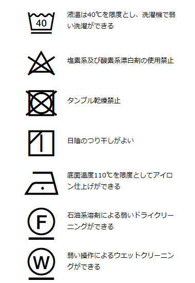 | 洗濯表記 | 詳しくはこちら⇒ |