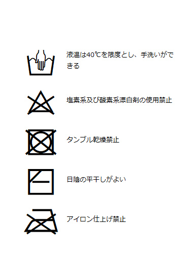 | 洗濯表記 | 詳しくはこちら⇒ |
