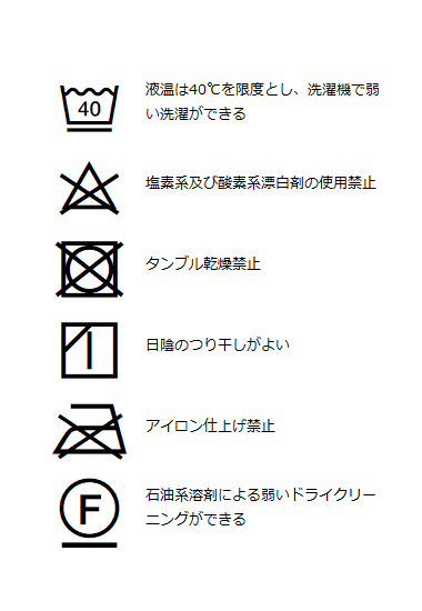 | 洗濯表記 | 詳しくはこちら⇒ |