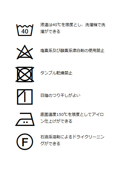 | 洗濯表記 | 詳しくはこちら⇒ |
