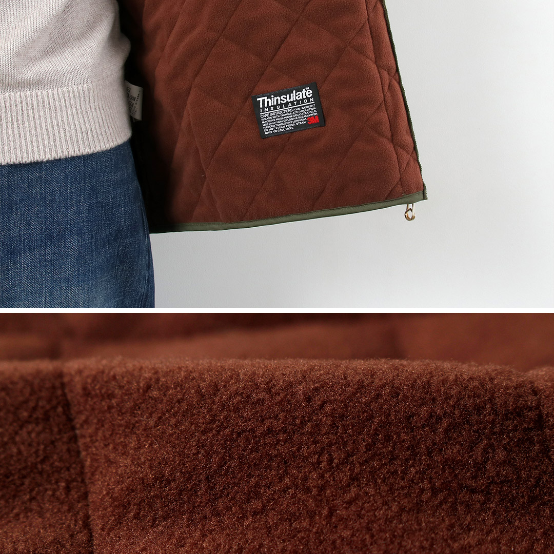 英国キルティングジャケットの名品を思わせるさらに裏にマイクロフリース素材を貼り付けることで暖かさをプラス。すでに廃盤となった名品「キルティング」+「マイクロフリース」の仕様を採用しています。