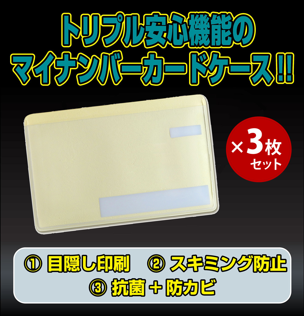 【発送は2026/1/5〜】マイナンバーカードケース クリームイエロー 3枚セット トリプル機能カードケース 目隠しあり スキミング防止 抗菌 防カビ