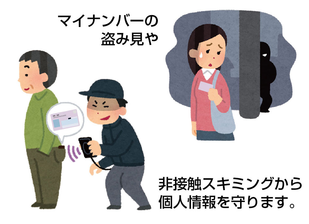 マイナンバーの盗み見や非接触スキミングから個人情報を守ります。