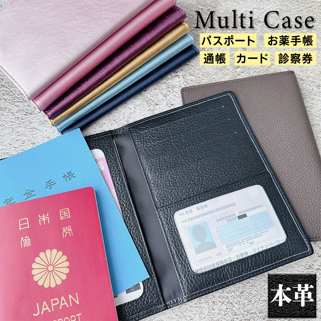 マルチケース お薬手帳 年金手帳 パスポート マイナンバーカード 母子手帳 通帳 キャッシュカード 診察券 牛革 本革