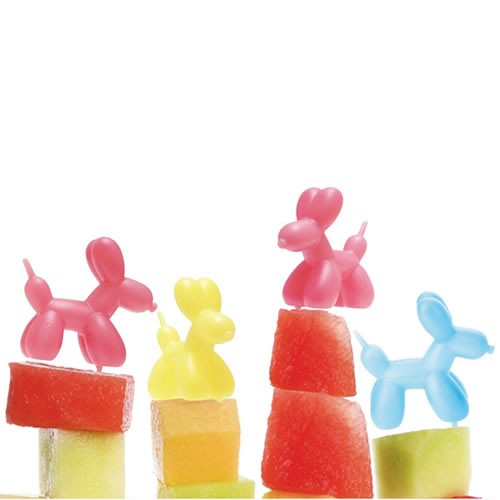 バルーンアートのあの犬がピックになりました。これを挿すだけでパーティ気分。バルーンピックと組み合わせて、お皿の上までデコレーションしてみては。(3色×各3本セット。)