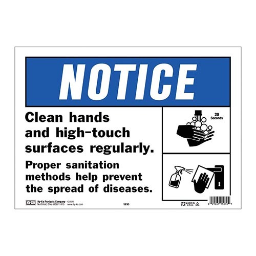 HY-KO 10x14プラスチックサイン(NOTICE CLEAN HANDS) HY-5830