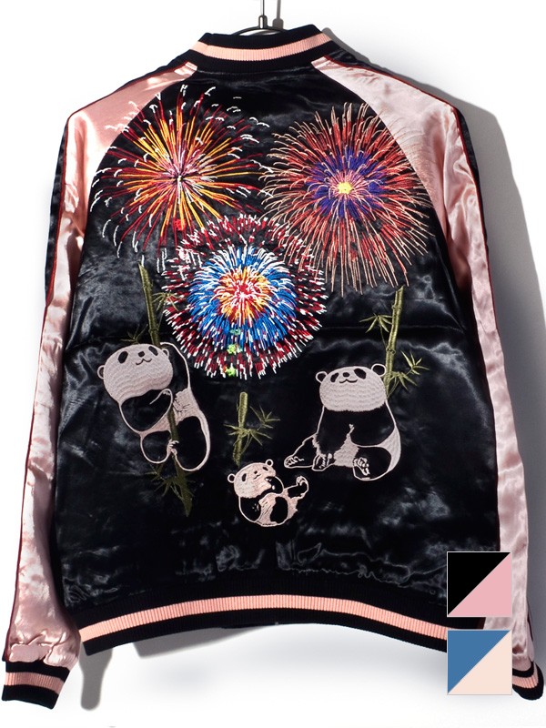 | Fireworks & Panda Embroidered Reversible Souvenir Jacket 花火& パンダ 刺繍 リバーシブル スーベニア ジャケット 海の向こうから見た和柄をメインテーマに日本に古くから伝わる和柄の魅力と、 海外の風を混ぜ合わせたユニークなデザインが特徴のジャパネスク。 花火の下で寛ぐパンダを描いた、ほのぼのとした雰囲気のスカジャンです。 2パターンのカラーリングはそれぞれ刺繍の色も違っているので、 全く違う印象になっています。 リバーシブル面は無地のジャケットとなっておりますので コーディネートの幅が広がる一品です。 | ||||||||||||||||||||||||||||||