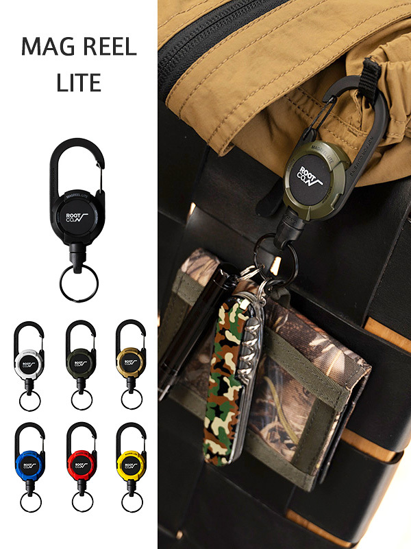 | ROOT CO MAG REEL LITE ルート コー マグリール LITE 【ROOT CO. STORY】 進もう。他人が決めたルートじゃなくて、自分しか進めないルートを。 踏み出そう。森へ、海へ、空へ、そこにあなたのルーツがあるはず。 マグネットを内蔵したカラビナ付きコードリールキーホルダー。 登山バッグやバッグ・ベルトループに取り付け、ポーチや財布、鍵、 アウトドア用マルチツールなどをぶら下げることで、大事なアイテムの落下防止に役立ちます。 釣りや登山はもちろん、キャンプシーンやフェス、海外旅行など様々なアウトドアアクティビティで活躍するアイテムです。 【CARABINER REEL】 落としたくないスマートフォンやギア等の落下防止に。 伸縮自在なリール紐は伸長約65cm&マグネット耐荷重は約2.0kgなので、 鍵やGopro、カメラ、財布等にも幅広く使用可能です。(150gまでの物を吊り下げてください) 【MAGNET HOLDER & ROTATABLE】 上部分はカラビナでワンタッチで取り付け・吊り下げともに着脱可能。 下部リール部分にはマグネットを内蔵しているので、重さでリールが勝手に伸びてしまう等を防ぎます。 また、マグネット接合部は360°回転するので、どの角度からも扱いやすい仕様です。 【FOR ANY ACTIVITY】 登山ザックやバッグ、ベルトループなど、カラビナで好きな場所にぶら下げることが可能。 様々なアウトドアアクティビティで活躍するアイテムします。 【DESIGN】 登山ザック等とも相性の良い、アウトドアテイストを取り入れたタフネスなデザイン。 アウトドアらしいブラック・カーキ・ホワイトから、 コーディネートのワンポイントになる鮮やかなレッド・イエロー・ブルーの全6カラー。 【HOW TO USE】 マグネット部を反対に引っ張るのではなく、折るようにすると簡単に取り外せます。 ※引っ張るよりも小さな力で着脱可能です。 リールを伸ばします。 ※リール紐は途中で止まる仕様ではありません。紐がリールに戻る際に指はさみにご注意ください。 ※砂鉄が磁石部分についてしまった場合はセロテープなどで取り除いてください。 ※本製品に吊り下げる物の重量は150g以下でご使用ください。 また、吊り下げている間に走るなど、激しく揺れると脱落の恐れがございますのでご注意ください。 ※ラインが伸びきった状態で1.5kg以上の負荷をかけると、紐が抜ける等本体が破損する場合があります。 ※本製品に必要以上の力を加えたり、無理な付け外しをしないでください。破損する恐れがあります。 ※商品画像で使用している、iPhoneケースは別売りになっています。 ※ゆうメール便で送料無料対象商品(代引・日時指定・ラッピング不可)となります。 宅配便での発送をご希望の際は別途送料540円いただきます。 | ||||||||||