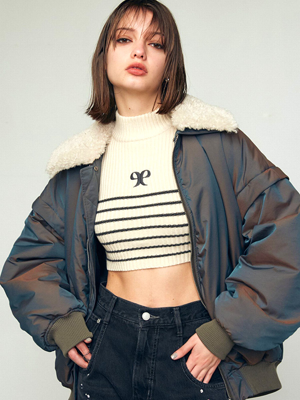 | EMODA Oversized 2WAY Blouson エモダ オーバー 2WAY ブルゾン 【EMODA(エモダ)】 「MODE=トレンドの発信」を軸に、スタイリング・素材・形で常に新しい提案を組み込み、 女性の「オシャレを楽しみたい」という気持ちに答えられるハイセンスでもありリアルクローズでもあるブランド、それがEMODA。 白黒の世界観に色・柄・異素材を組み合わせ、強さの中にも女らしさのあるスタイリングを提案していく。 FASHIONの枠を超えMUSIC・ART・CULTUREと結びつきながら新たなFASHIONの形を表現していく。 袖が取り外せるデザインなので、ベストとMA-1の2WAYで着用できます。 衿のボアも取り外しが可能なので顔回りに変化を付けられるのもポイントになります。 シンプルなデザインなので袖の切り替えにパッカリングを入れてアクセントになるようにしています。 ヒップが隠れるゆったりとしたサイズ感なので、タイトなボトムやミニ丈のボトムとのバランスが〇 ベストとMA-1の2WAYなので長い季節で着用していただけます。 | ||||||||||