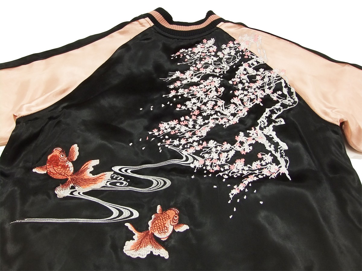ジャパネスク スカジャン 3RSJ-021 桜金魚 Japanesque メンズ スーベニアジャケット 黒×ピンク 新品