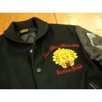アメカジ インディアン刺繍 スタジャン(スタジアムジャンパー・アワードジャケット) 袖豚革レザー LOWBLOW KNUCKLE 66703 黒ブラック 新品