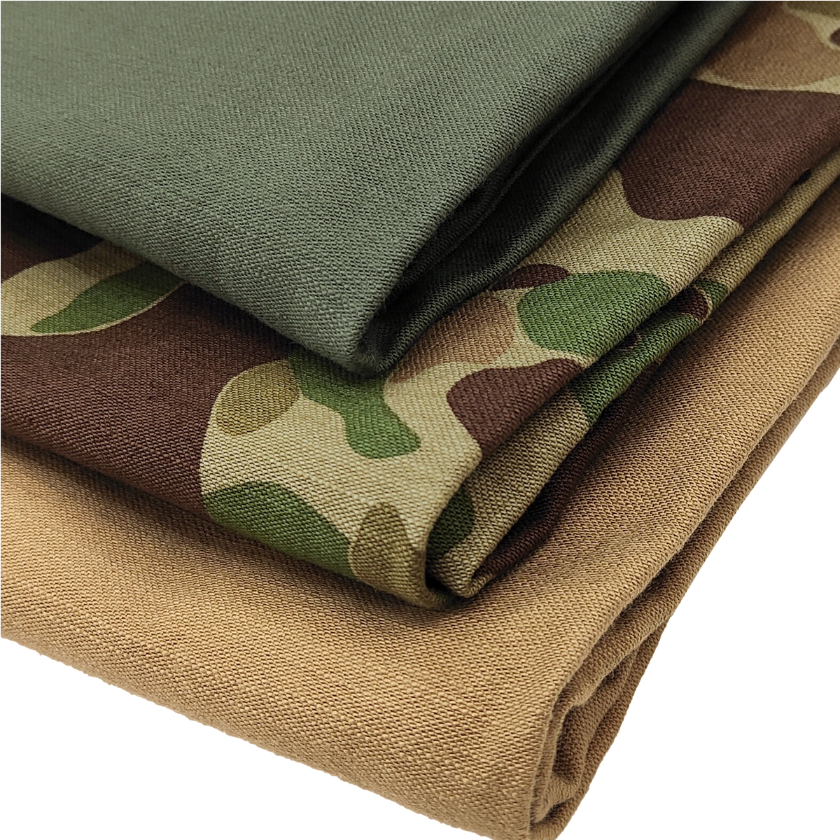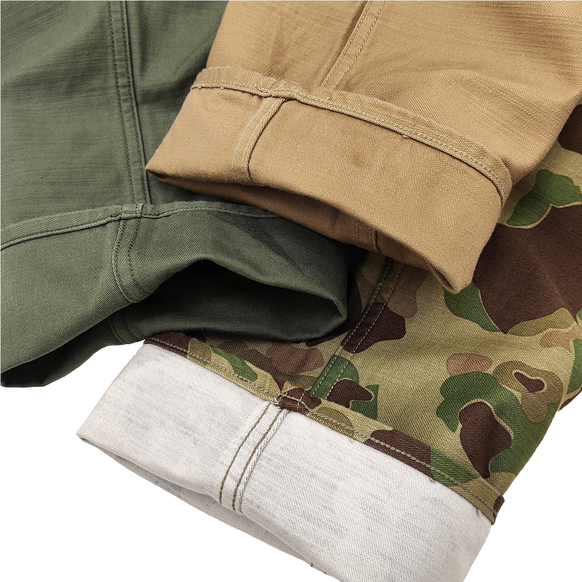 反応染料で染め上げた横段に走るムラの強い生地感が、ミリタリーのラフな雰囲気を演出しています。
